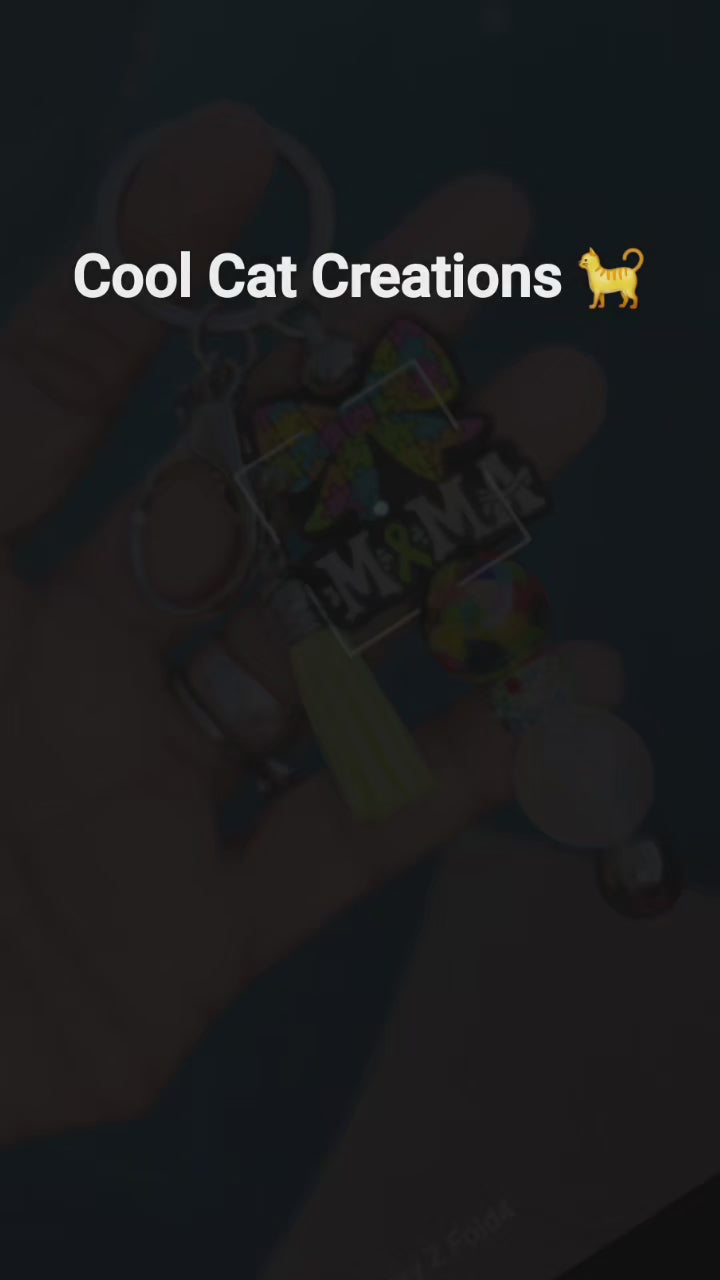Show your Autism Mama pride with this vibrant, handcrafted keychain! Featuring colorful large beads, a sparkling rhinestone bead, and a sweet "MAMA" charm. A beautiful and unique way to carry your keys or accessorize your bag.