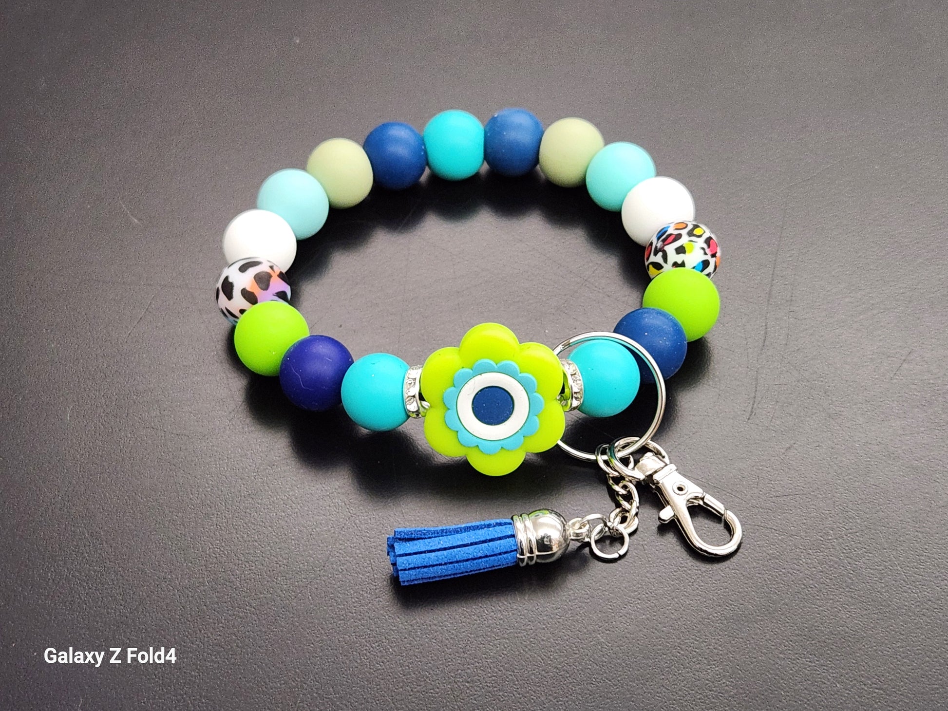 Featuring a vibrant mix of colorful beads, a charming flower accent, and a stylish tassel, this keychain is as functional as it is fashionable. Keep your keys easily accessible while adding a touch of personality to your bag or wrist.