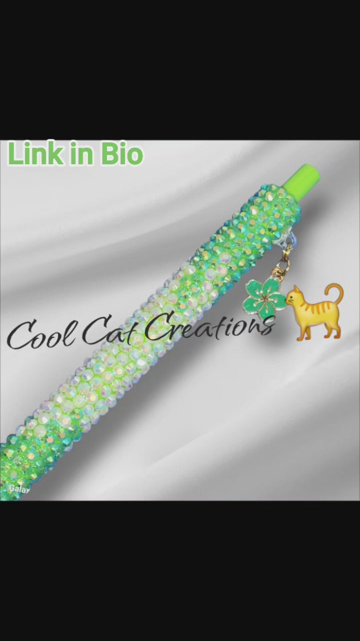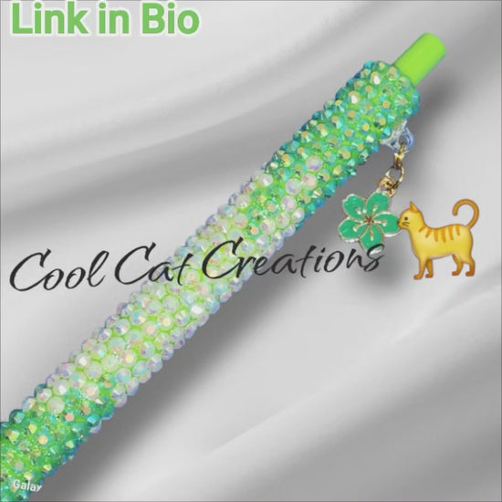 #RhinestonePen #Handcrafted #Sparkle #Ombre #GreenAndWhite #FlowerCharm #UniqueGift #LuxuryPen #WritingInStyle #CoolCatCreations