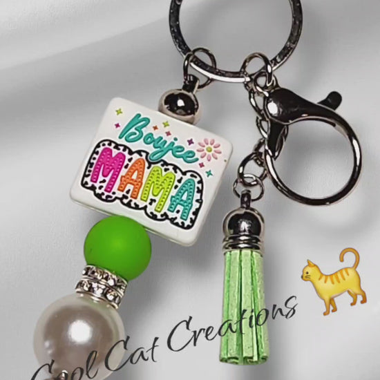 #MothersDayGift #BoujieMama #HandmadeKeychain #BeadedKeychain #PearlBead #Rhinestone #Tassel #GiftForMom #SupportSmallBusiness #CoolCatCreations