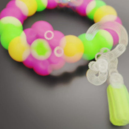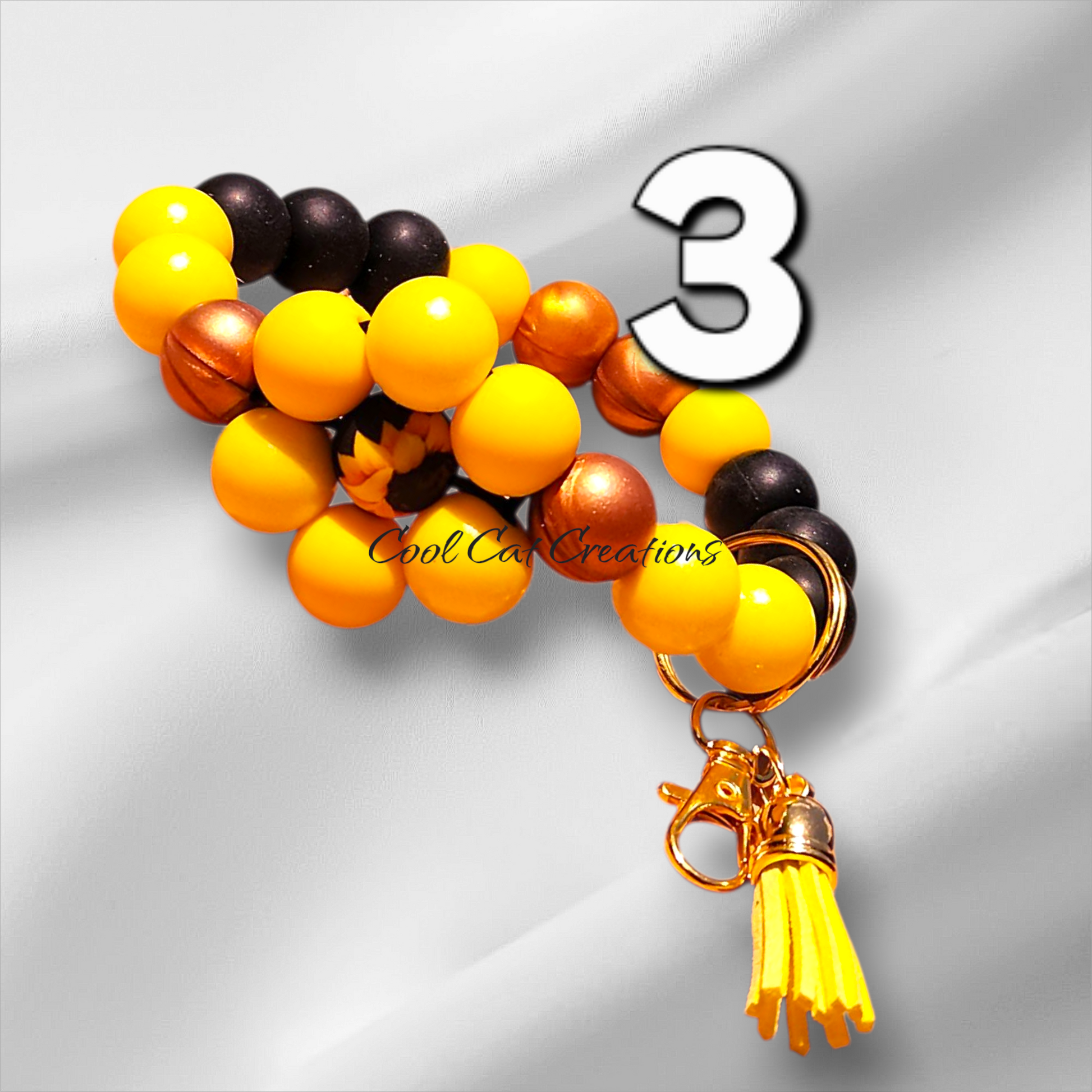 Choose your favorite design! We have a variety of cheerful color combinations, including bright neons, and options with fun animal print beads for an extra touch of flair. Each wristlet comes with a convenient swivel keychain clip, making it easy to attach to your bag or belt loop.