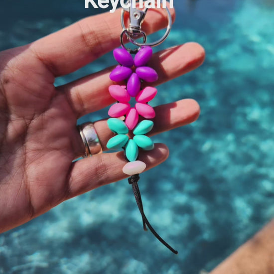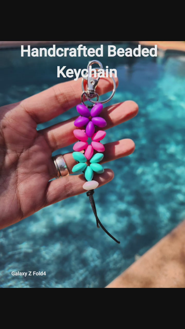 Each charm is lovingly made with colorful beads, creating a delightful floral design that's sure to catch the eye. Whether you want to add a touch of whimsy to your keys, brighten up your backpack, or give a thoughtful, handmade gift, this keychain is a wonderful choice.