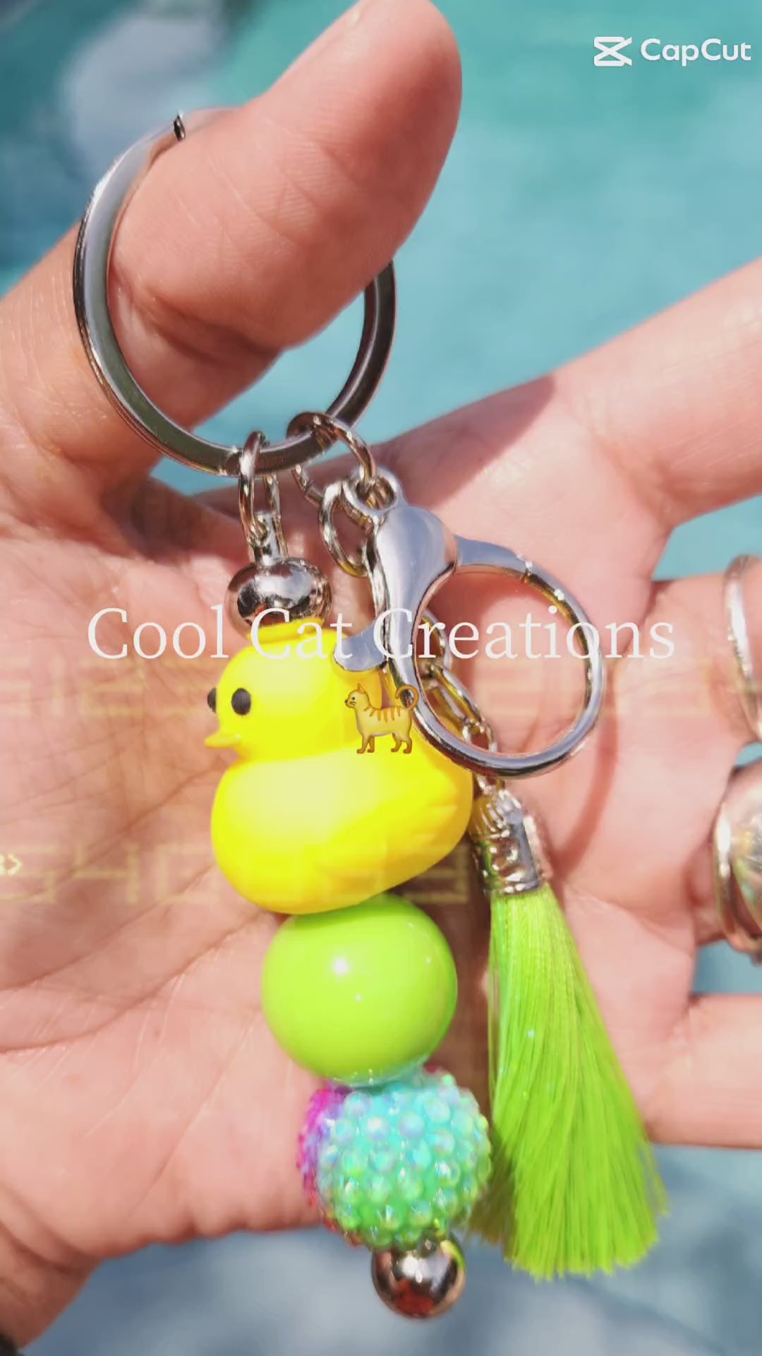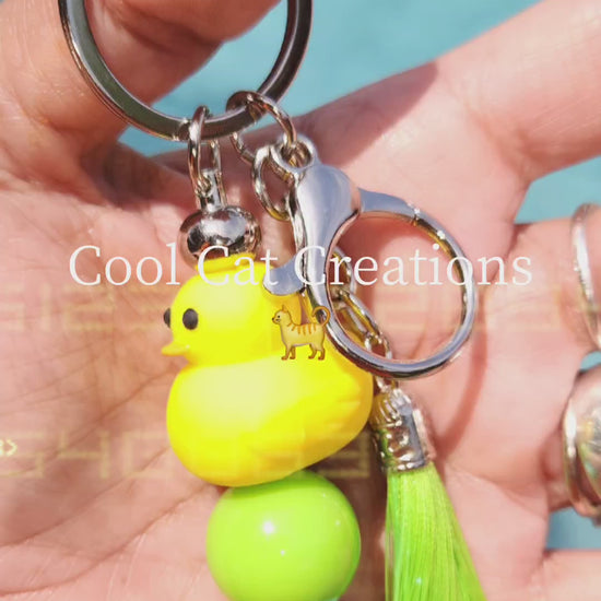 This adorable, handcrafted keychain is calling all Jeep enthusiasts and rubber ducky lovers! Featuring a cheerful yellow duck, a vibrant lime green bead, and a dazzling multi-colored rhinestone disco ball, this keychain is sure to add a pop of fun and personality to your keys or rearview mirror.