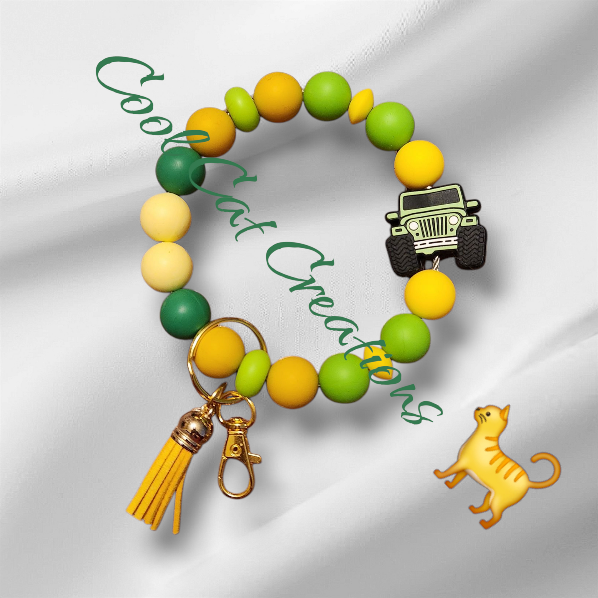Looking for a unique gift that stands out? Our handcrafted beaded jeep wristlet keychains are sure to delight! Each one is carefully made with colorful beads, a cool jeep charm, and a playful tassel, making it a truly special accessory. It's not just a keychain; it's a statement piece that celebrates their love for jeeps. Ideal for birthdays, holidays, or just because!