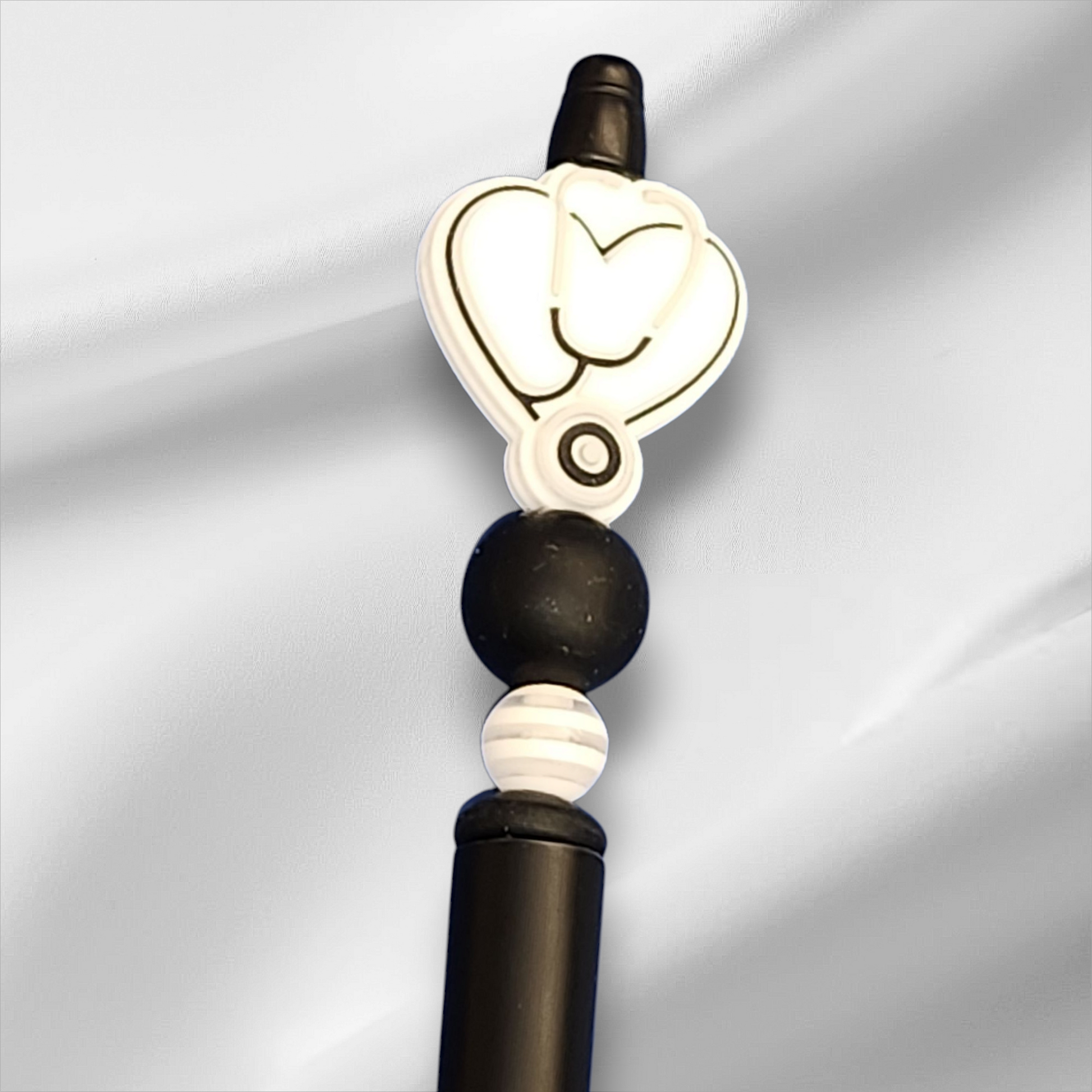 Introducing the PulsePoint Pen, a handcrafted masterpiece designed for the dedicated professionals who care for our hearts. This unique pen features a delicate, hand-beaded design with a charming heart and stethoscope charm, making it the perfect companion for nurses, doctors, medical students, and anyone with a passion for healing.