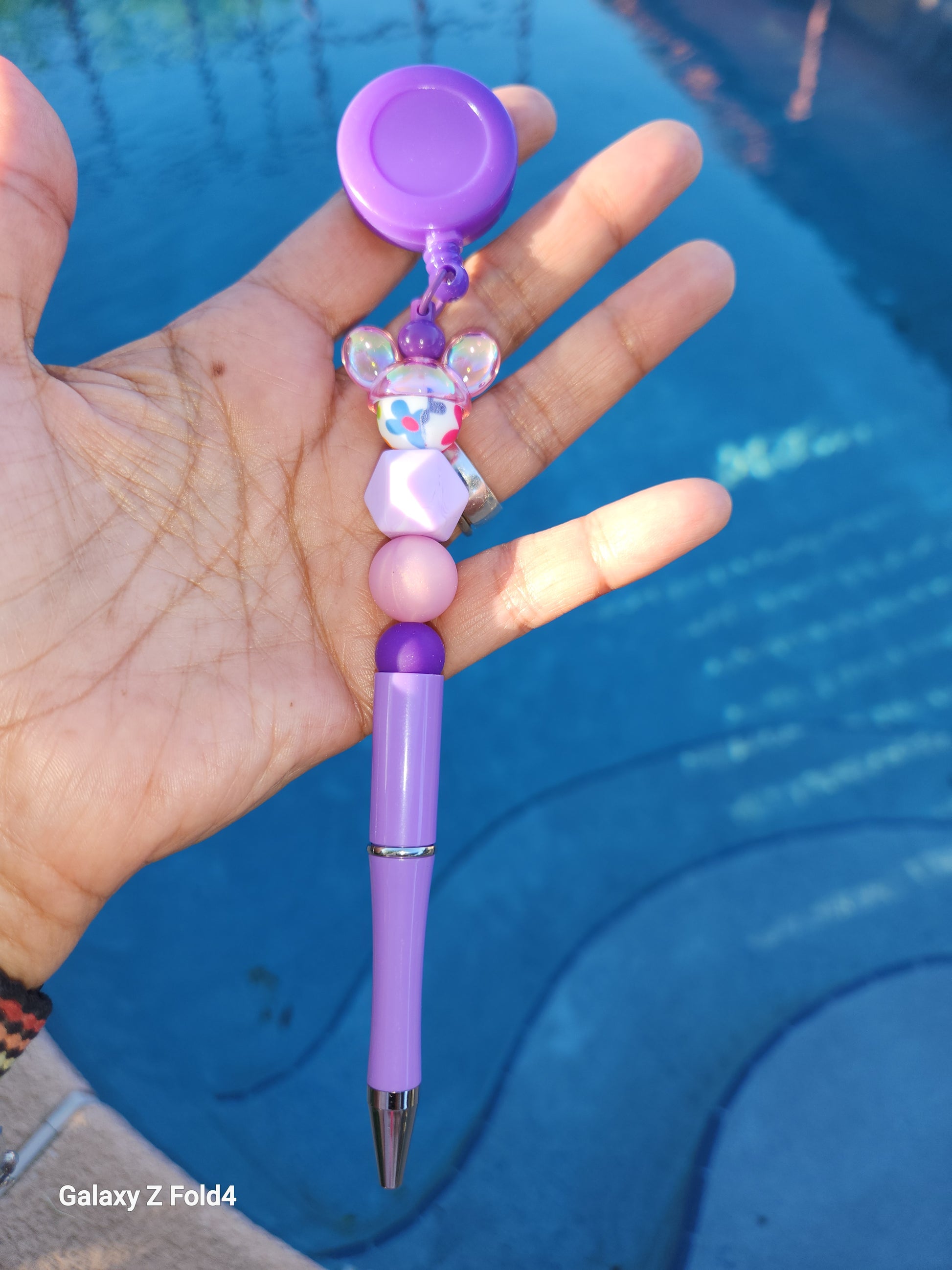 #Handmade #BeadedPen #BadgeReel #MouseInspired #FloralBead #Iridescent #CuteStationery #OfficeStyle #GiftIdeas