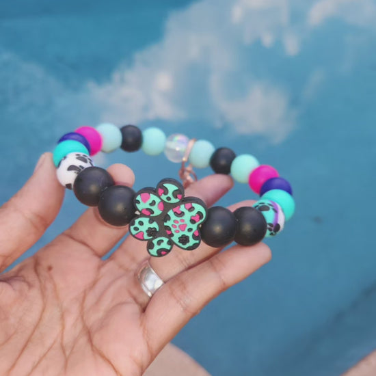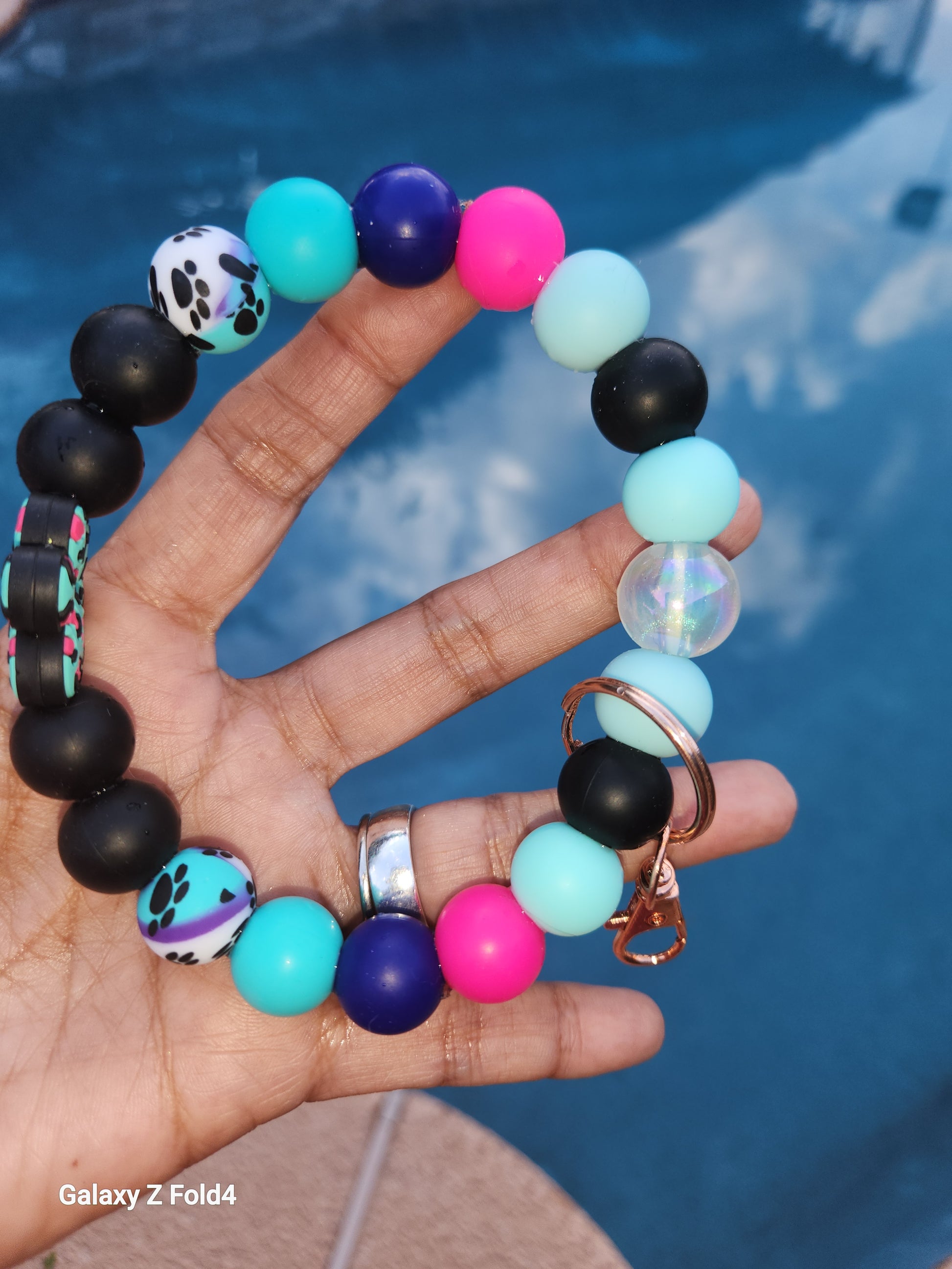 Featuring charming paw print beads, including special animal paw printed beads, this wristlet adds a touch of whimsy to your everyday essentials. The beautiful glass accent bead catches the light, adding a touch of elegance.
