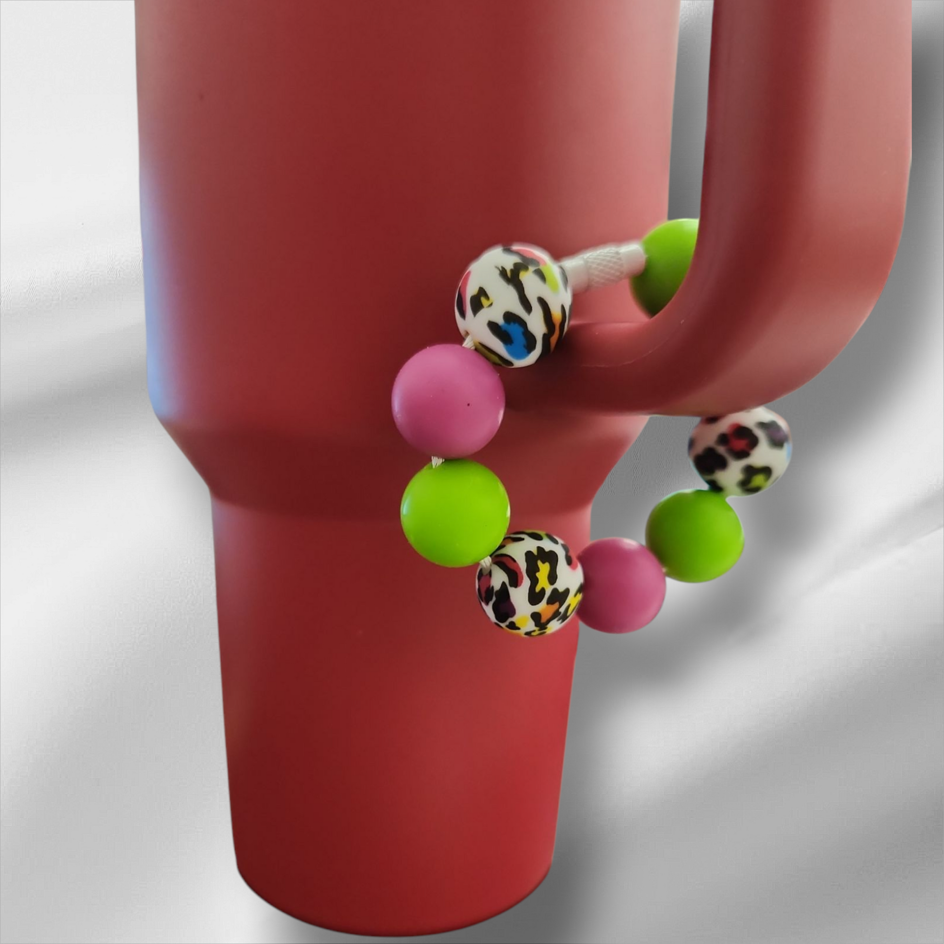 Add a pop of fun to your tumbler! ✨ This handcrafted beaded charm features trendy animal print, vibrant green, and playful pink beads. Perfect for your Stanley or any cup! Grab yours today!