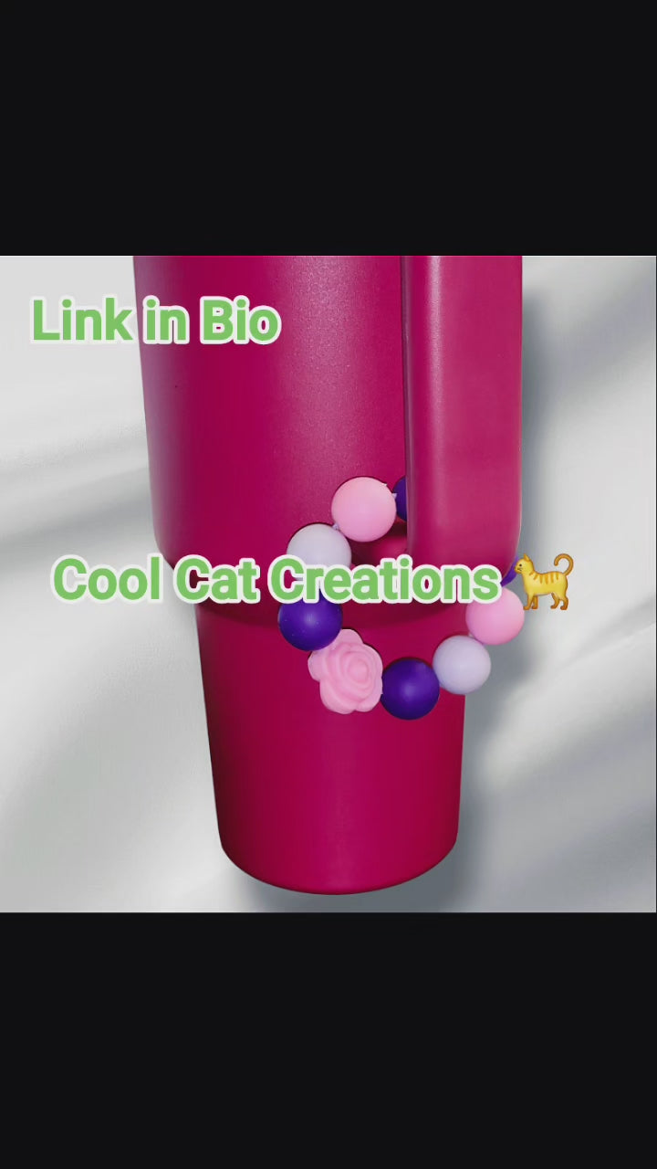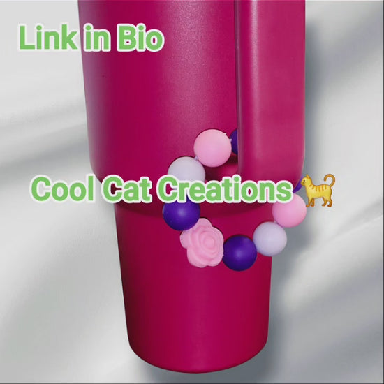 💖 Pretty in Pink & Purple! 💜 Add a touch of handcrafted charm to your Stanley (or any tumbler!) with this adorable beaded bracelet featuring a sweet pink rose. Get yours today!
