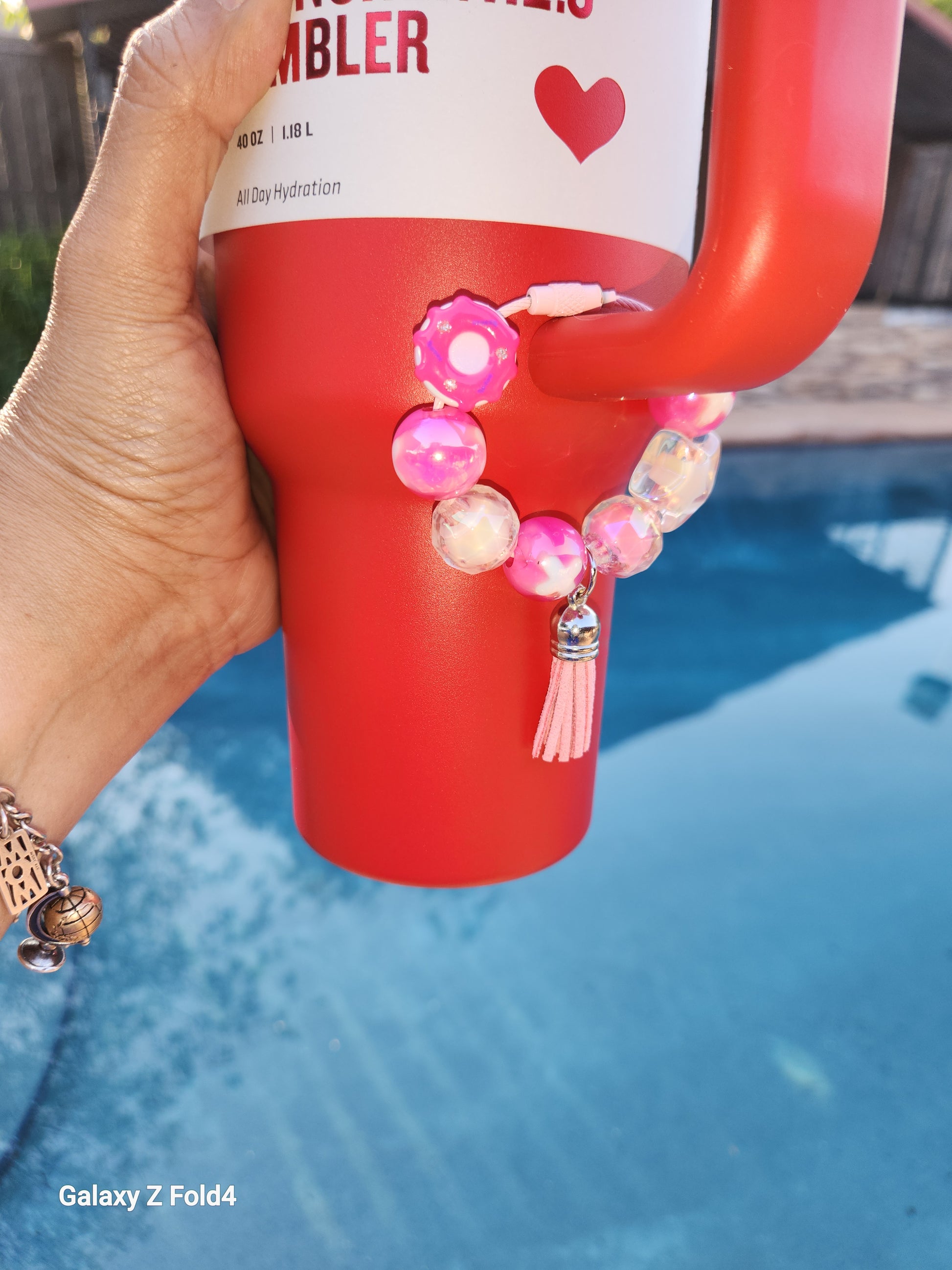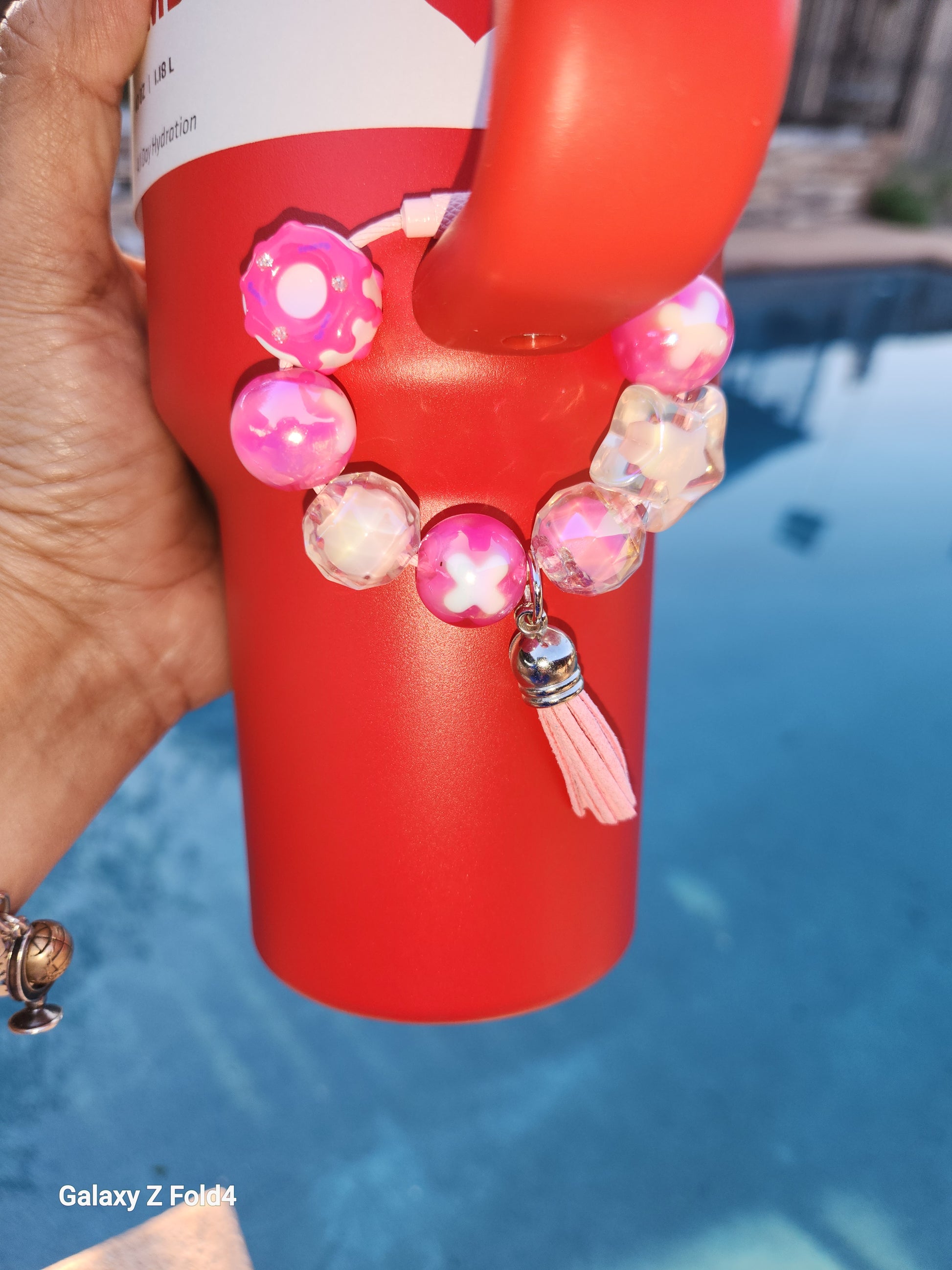 #TumblerCharm #HandmadeJewelry #BeadedCharm #DoughnutBead #PinkBeads #XOXOBeads #TasselCharm #TumblerAccessories #GiftIdeas #SupportSmallBusiness #Crafty #EdinburgTexas