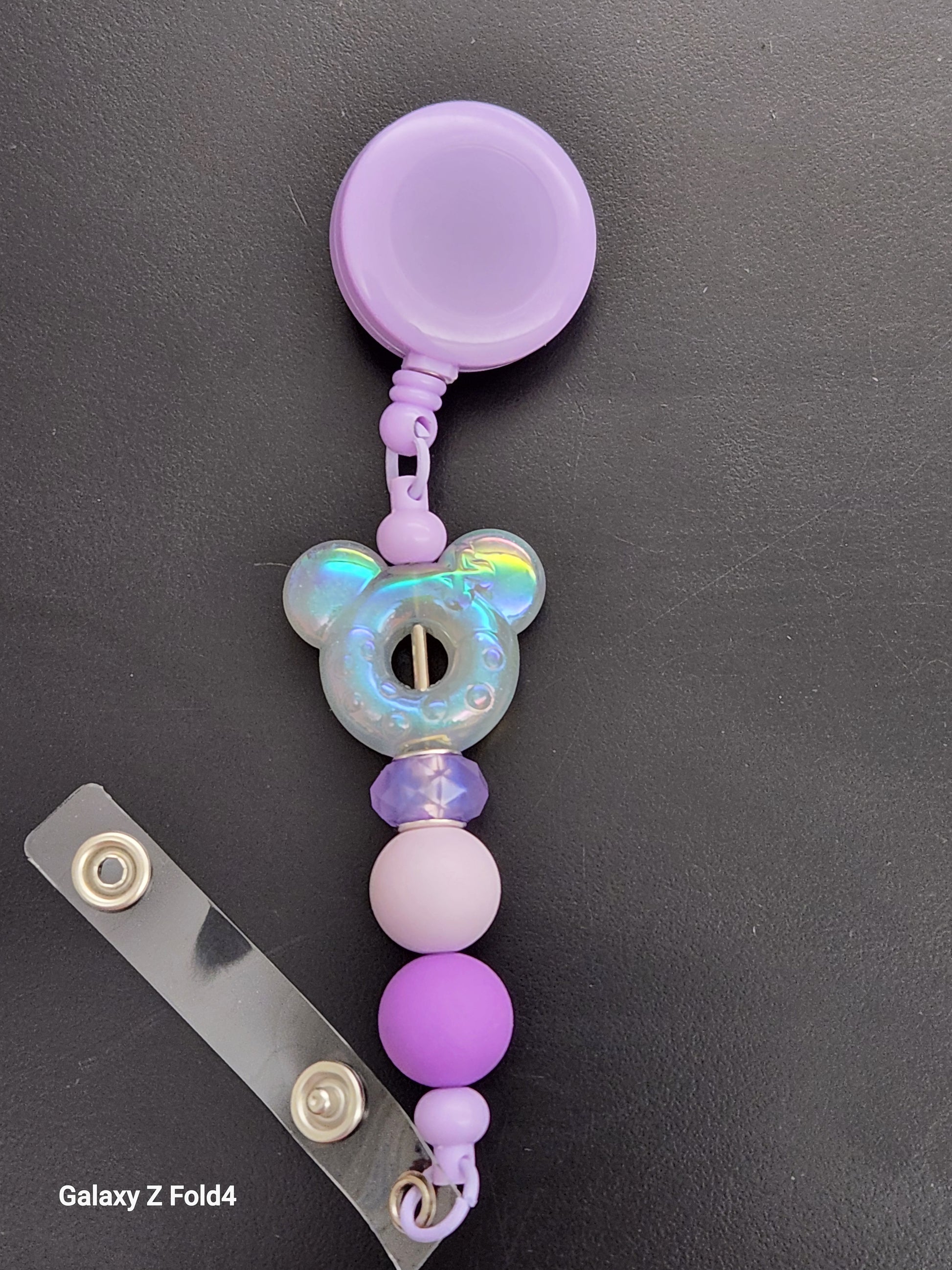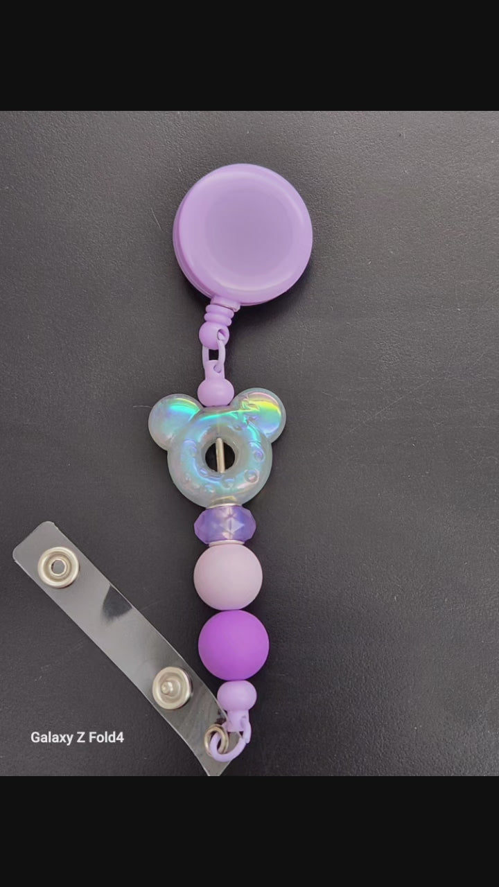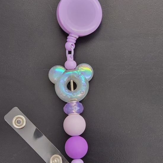 Elevate your work style with this handcrafted beaded badge reel! Featuring a unique, handcrafted design, this reel boasts beautiful purple glass bead that adds a touch of elegance and personality to your everyday.