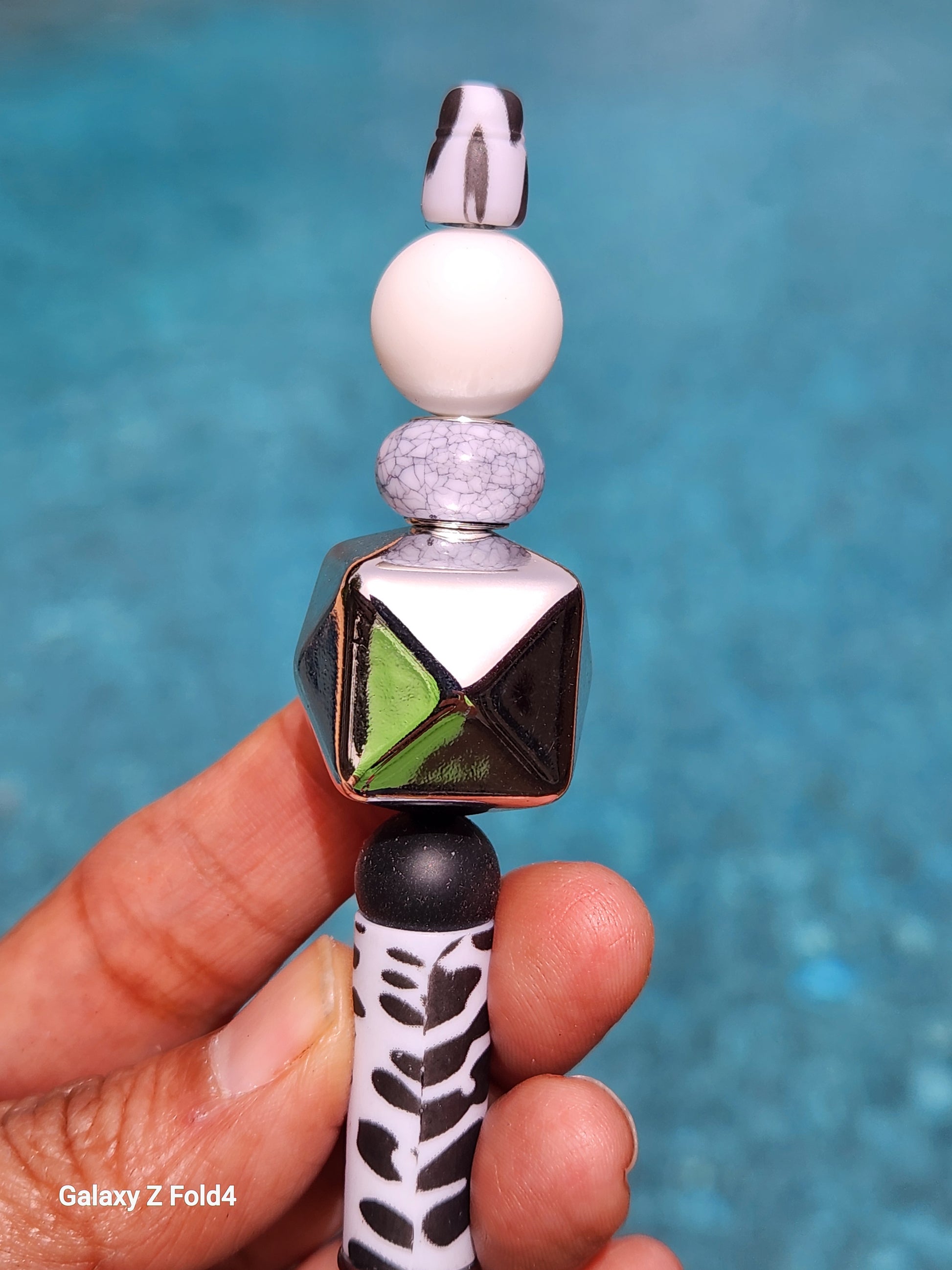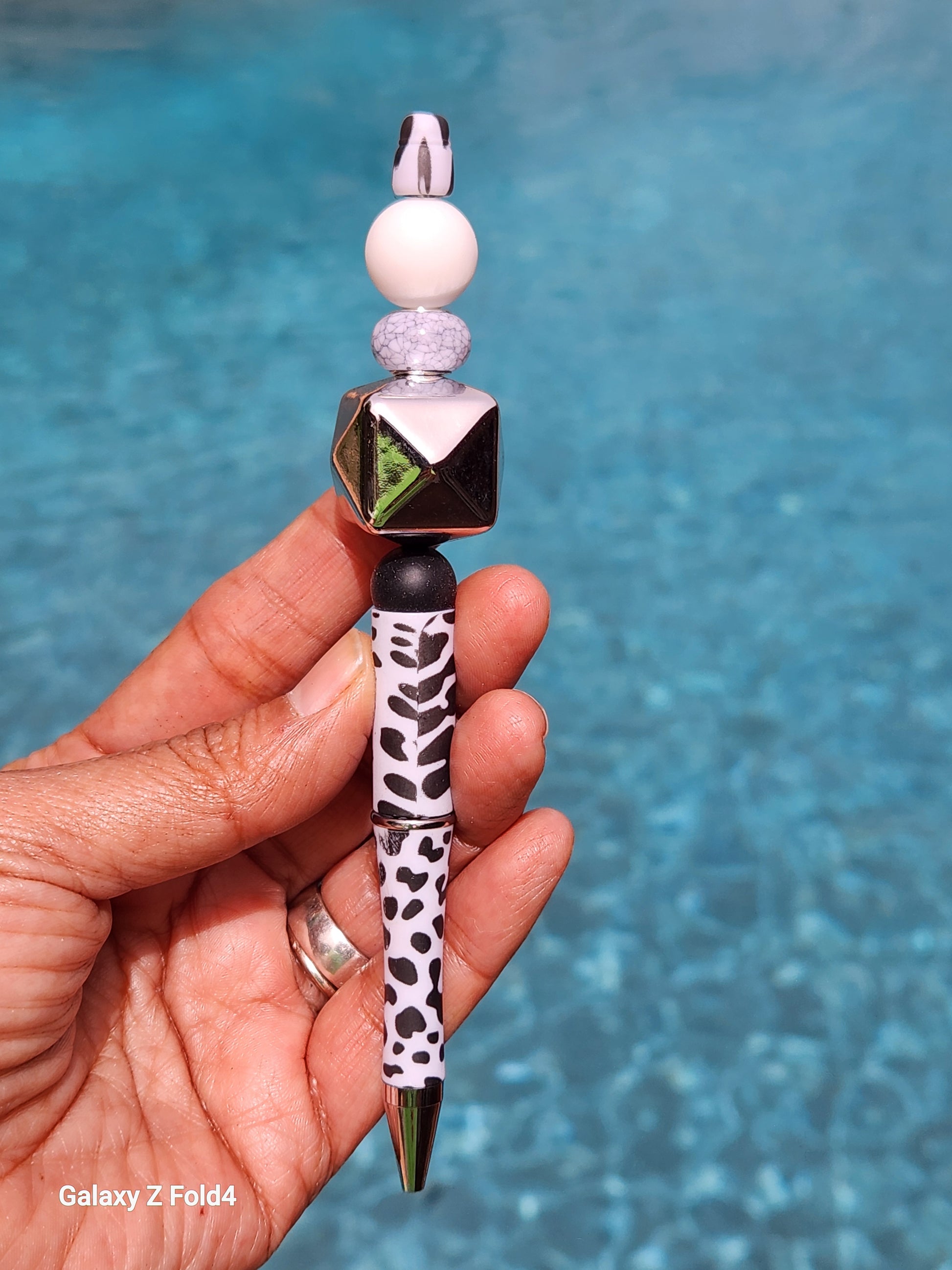 This unique pen features a large silver bead and an animal print design, making it a stylish and eye-catching accessory. The handcrafted beads add a touch of luxury, while the smooth writing tip ensures a comfortable writing experience.